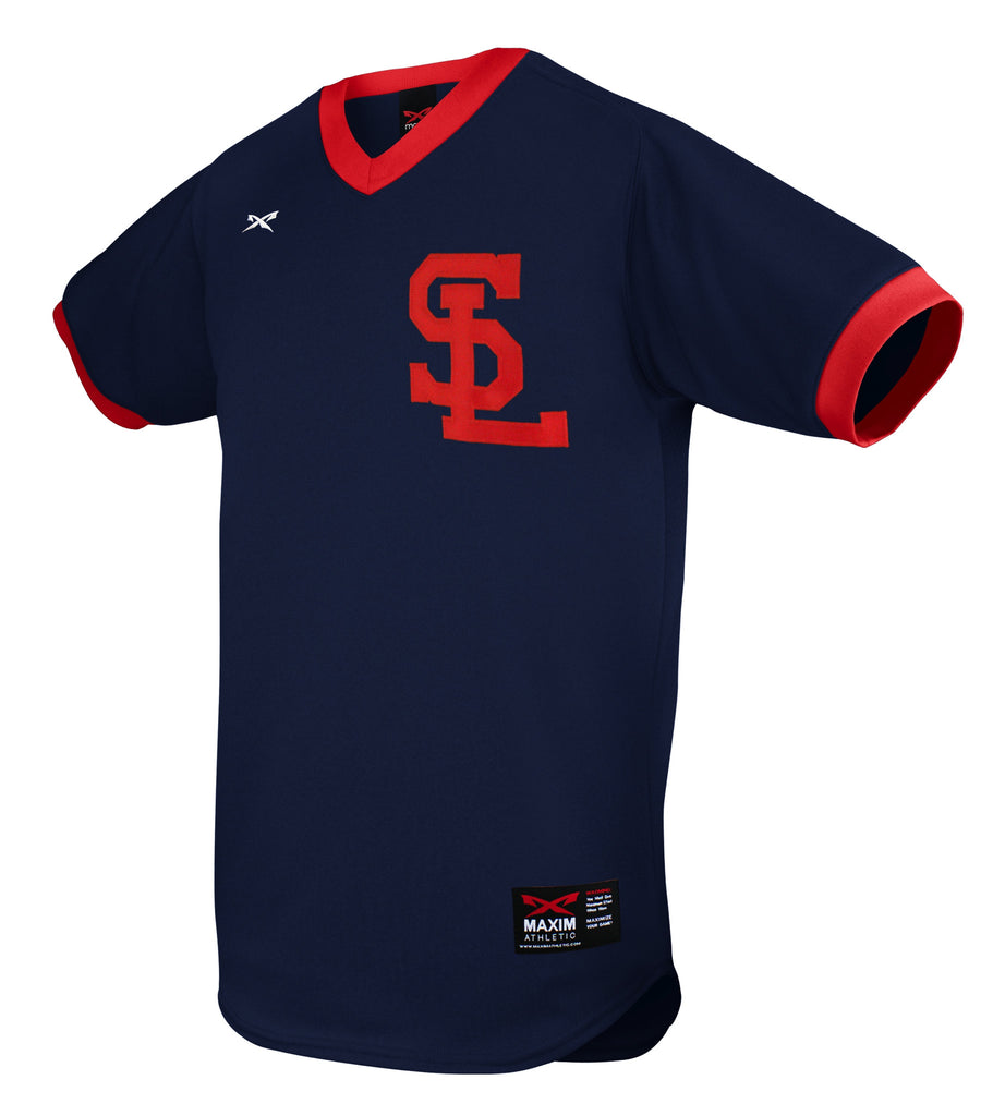 The Vintage baseball jersey is a 2-color v-neck pull over baseball jersey with raglan sleeves. Featured here in 100% U.S. made Professional Weight Polyester, the Vintage is available in a variety of other fabrics.